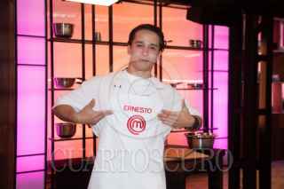 CIUDAD DE MÉXICO, 16FEBRERO2024. Los Chefs Poncho Cadena, Zahie Téllez y Adrián Herrera durante la presentación de las celebridades que participarán en la cuarta temporada del reality show “Master Chef Celebrity” de TV Azteca. FOTO: EDGAR NEGRETE LIRA/CUARTOSCURO.COM