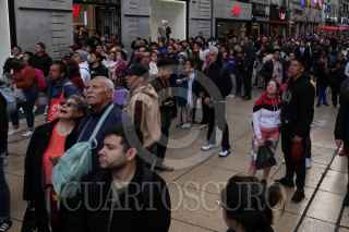CIUDAD DE MÉXICO, 17FEBRERO2024.- Capitalinos evacuaron los edificios en la Zona Centro de la ciudad tras activarse la alerta sísmica. El epicentro fue registrado en Guerrero con una magnitud de 5 grados. FOTO: GALO CAÑAS/CUARTOSCURO.COM