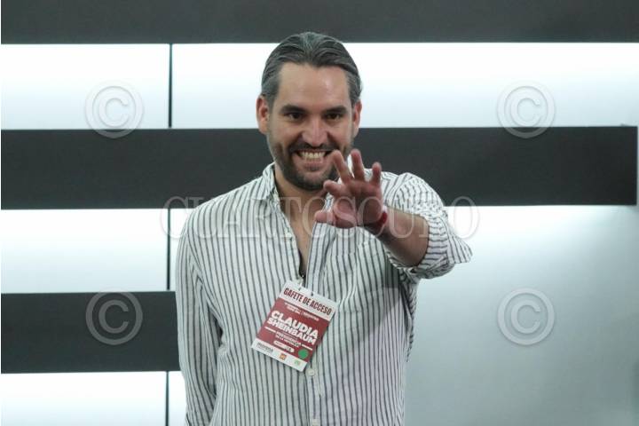 CIUDAD DE MÉXICO, 18FEBRERO2024.- Rifa Rodrigo Ímaz Alarcón, hijo de Claudia Sheinbaum, durante su llegada al registro como candidata única a la presidencia en las instalaciones del Instituto Nacional Electoral. FOTO: GRACIELA LÓPEZ /CUARTOSCURO.COM
