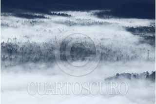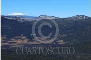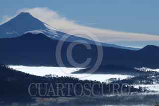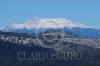 XALATLACO, ESTADO DE MÉXICO, 18FEBRERO2024.- El frente frio número 35 que afecta a los estados del centro y oriente del país dejo nevadas en los picos altos que se encuentran en el Bosque de Agua que comparte el Estado de México, Morelos y la Ciudad de México. En la imagen al fondo el volcán Xinantecátl, al frente los cerros Cadena, La Corona, Secundino y el volcán inactivo Muñeco. FOTO: MARGARITO PÉREZ RETANA/CUARTOSCURO.COM