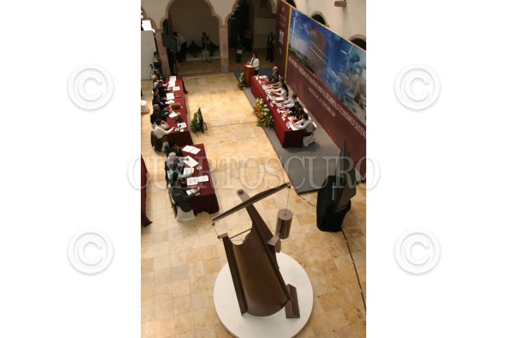 ZACATECAS, ZACATECAS, 22JUNIO2007.- La gobernadora Amalia García Medina, saluda al vicepresidente de CAINTRA Angel Casán Marcos, previo a la inauguración de l foro "Gas Natural y Energías Alternativas para el Desarrollo Económico Sustentable" en el museo de arte abstracto Manuel Felguérez. FOTO: MOISÉS PABLO/CUARTOSCURO.COM