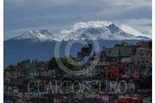 TOLUCA, ESTADO DE MÉXICO, 18FEBRERO2024.- Vista del Volcán Xinantécatl desde la ciudad de Toluca después de la nevada que se registrará debido al frente frío número 35 y la masa de aire ártico que prevalece, se pudo disfrutar de esta panorámica. FOTO: CRISANTA ESPINOSA AGUILAR /CUARTOSCURO.COM