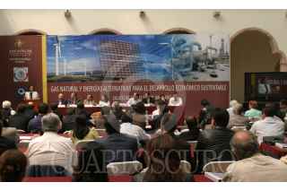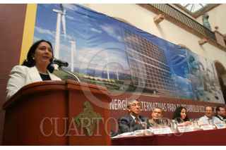 ZACATECAS, ZACATECAS, 22JUNIO2007.- La gobernadora Amalia García Medina, saluda al vicepresidente de CAINTRA Angel Casán Marcos, previo a la inauguración de l foro "Gas Natural y Energías Alternativas para el Desarrollo Económico Sustentable" en el museo de arte abstracto Manuel Felguérez. FOTO: MOISÉS PABLO/CUARTOSCURO.COM