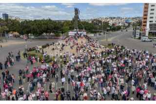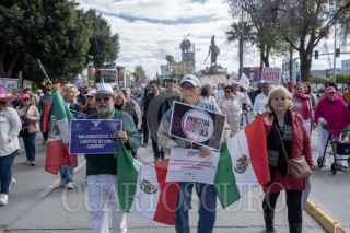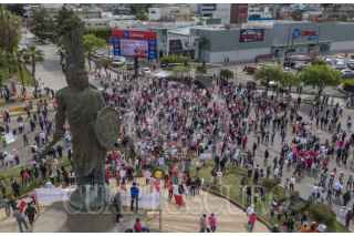 TIJUANA, BAJA CALIFORNIA, 18FEBRERO2024.- Cientos de personas se reunieron esta mañana en la glorieta Cuauhtémoc para participar en la "Marcha Por La Democracia" para manifestarse a favor del voto libre. Esta marcha se realizó de manera simultánea en más de 117 ciudades del país, donde los manifestantes exigieron al gobierno no intervenir en las próximas elecciones del 2 de junio. La avenida Paseo de los Héroes y el bulevar Cuauhtémoc Norte, fueron cerrados por la Policía Municipal para que la marcha se realizará con seguridad. Con banderas, cartulinas y carteles, los manifestantes marcharon hacia el Monumento México, haciendo un llamado a la ciudadanía a ejercer su derecho al voto. FOTO: OMAR MARTÍNEZ /CUARTOSCURO.COM