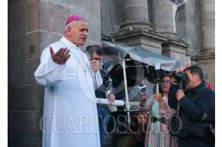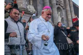TOLUCA, ESTADO DE MÉXICO, 19FEBRERO2024.- El Obispo Auxiliar de Toluca Maximino Martínez Miranda al encabezar la bendición de peregrinos de la LXXXVI Peregrinación a la Basílica de Guadalupe admitió que las autoridades eclesiásticas han tenido reuniones con integrantes del crimen organizado haciendo un llamado a La Paz, esto después de que se diera a conocer sobre una reunión la semana pasada entre obispos de Guerrero con líderes de grupos criminales, ante la ola de violencia que se vive. FOTO: CRISANTA ESPINOSA AGUILAR /CUARTOSCURO.COM