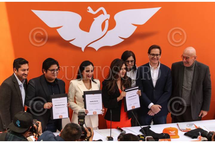 CIUDAD DE MÉXICO, 19FEBRERO2024.- Antonio Aguilar, Mitzi Badillo Juárez, Alonso Flores, Gibrán Ramírez, Sandra Cuevas,Julieta Macías Rábago, Dante Delgado, Alejandra Barrales, Salomón Chertorivski, Alberto Tlaxcalteco y Lilyana Barajas Rivas durante la presentación como candidatas al senado de la República. FOTO: ANDREA MURCIA /CUARTOSCURO.COM