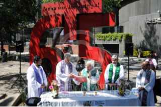 CIUDAD DE MÉXICO, 19FEBRERO2024. - Alicia Pecina Carrizales, familiar de uno de los mineros que quedaron atrapados en Pasta de Conchos, falleció este año, por lo que colocaron una fotografía de ella en el altar donde se ofició la misa. FOTO: DANIEL AUGUSTO /CUARTOSCURO.COM