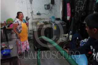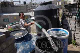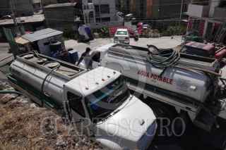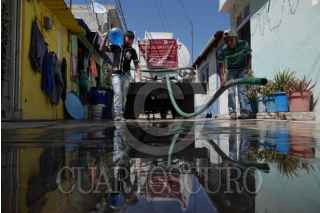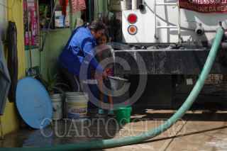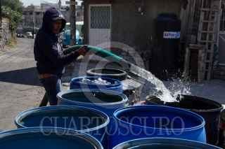 CIUDAD DE MÉXICO, 19FEBRERO2024.- Un señor que transporta agua potable en una pipa suministra botes y tinacos afuera de una casa en el predio Yuguelito, alcaldía Iztapalapa. Cada semana, vecinos de este lugar reciben el vital líquido con pipas de agua porque algunas casas no cuentan con tubería, mientras las que cuentan con esta no les cae de la llave. FOTO: GRACIELA LÓPEZ /CUARTOSCURO.COM