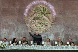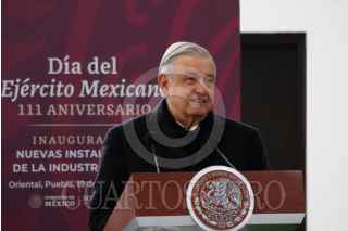 ORIENTAL, PUEBLA, 19FEBRERO2024.- Andrés Manuel López Obrador, Presidente de México, durante la conmemoración del 11 Aniversario del Día de Ejército Mexicano e inauguración de las nuevas instalaciones de la industria militar. FOTO: PRESIDENCIA/CUARTOSCURO.COM