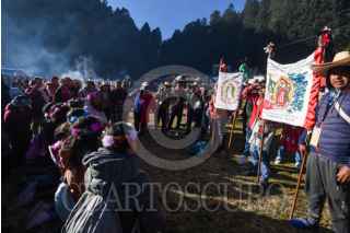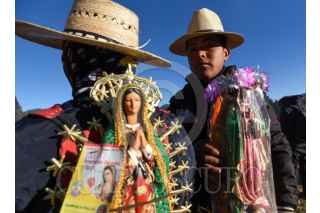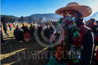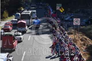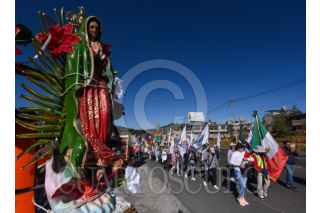 OCOYOACAC, ESTADO DE MÉXICO, 20FEBRERO2024.- Continúan su camino peregrinos que se dirigen a la Basílica de Guadalupe para su cita anual con la Virgen Morena, los asistentes Peregrinación número LXXXVI al Tepeyac pernoctaron en La Marquesa y a muy temprana hora escucharon misa encabezada por el Obispo Auxiliar de Toluca Maximino Martínez Miranda, y emprendieron su camino a la CDMX. FOTO: CRISANTA ESPINOSA AGUILAR /CUARTOSCURO.COM