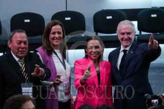 CIUDAD DE MÉXICO, 20FEBRERO2024.- La ex senadora Angélica De la Peña Gómez; Consuelo Sáizar, extitular del Fondo de Cultura Económica y el Conaculta, y la senadora panista Josefina Vázquez Mota, previo al registro de Xóchitl Gálvez, candidata por la coalición “Fuerza y Corazón por México”, ante el INE para contender en las próximas elecciones presidenciales. FOTO: GALO CAÑAS/CUARTOSCURO.COM