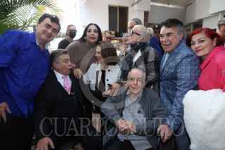 CIUDAD DE MÉXICO, 20FEBRERO2024. Jorge Ortiz de Pinedo junto a integrantes de la mesa directiva durante la celebración por el 80 aniversario de la Casa del Autor. FOTO: EDGAR NEGRETE LIRA/CUARTOSCURO.COM