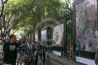 CIUDAD DE MÉXICO, 20FEBRERO2024.- Horacio Duarte, secretario de Gobierno del Estado de México, y Homero Fernández Pedroza, director general del Complejo Cultural Los Pinos, durante la inauguración de la exposición fotográfica "Ingeniería Viva/Infraestructura Suave" que muestra imágenes del Parque Ecológico Lago de Texcoco, el cual esta siendo proyectado en donde el gobierno de Peña Nieto iba a construir un aeropuerto. La exposición se encuentra en la rejas del Bosque de Chapultepec sobre Reforma. FOTO: MOISÉS PABLO/CUARTOSCURO.COM