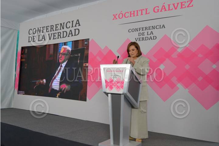 CIUDAD DE MÉXICO, 21FEBRERO2024.- Xóchitl Gálvez, candidata a la presidencia por la coalición Fuerza y Corazón por México, ofreció su conferencia a medios denominada "Conferencia de la Verdad, realizada en su casa de campaña FOTO: GRACIELA LÓPEZ/CUARTOSCURO.COM