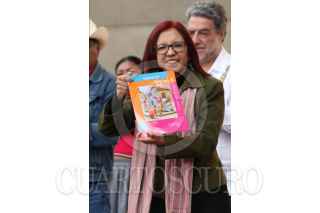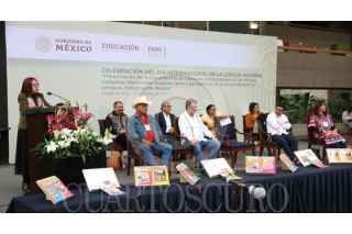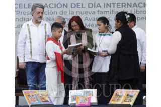 CIUDAD DE MÉXICO, 21FEBRERO2024.- En el marco del Día Internacional de la Lengua Materna, la Secretaría de Educación Pública (SEP) presentó los materiales que pertenecen a la nueva familia de Libros de Texto Gratuitos (LTG) en 20 lenguas indígenas nacionales, integrados por 180 títulos. El evento estuvo encabezado por la titular de la SEP, Leticia Ramírez Amaya y por el director general del INPI, Adelfo Regino Montes, así como representantes de los equipos que participaron en la traducción-interpretación de 17 entidades federativas: Chiapas, Chihuahua, Campeche, Durango, Estado de México, Guanajuato, Guerrero, Hidalgo, Jalisco, Michoacán, Nayarit, Oaxaca, Puebla, Quintana Roo, Sonora, Veracruz y Yucatán. La traductora-intérprete de la lengua 'uza' (chichimco jona) del Instituto Nacional de Lenguas Indígenas (Inali), Leticia Pérez García, hizo entrega a la titular de la SEP los nuevos libros en lenguas indígenas, agradeciendo en nombre de los participantes que se les permitiera trabajar en la elaboración. FOTO: CORTESÍA SEP/CUARTOSCURO.COM