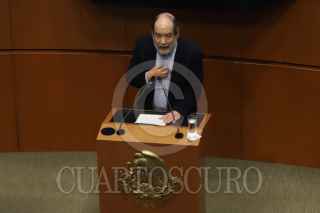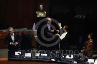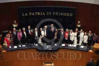 CIUDAD DE MÉXICO, 22FEBRERO2024. Ceremonia solemne por la develación de la inscripción de la leyenda: “Carlos Pellicer Cámara, el Poeta de América", en el muro de honor del Senado de la República. FOTO: EDGAR NEGRETE LIRA/CUARTOSCURO.COM