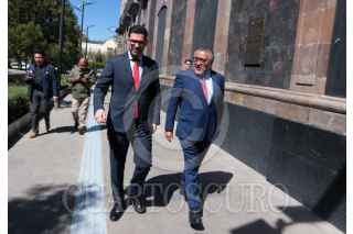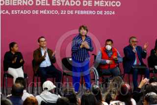 TOLUCA, ESTADO DE MÉXICO, 22FEBRERO2024.- Delfina Gómez Álvarez Gobernadora del Estado de México encabezó la entrega de ambulancias, mastógrafos y apoyos funcionales donados por la Beneficencia Publica del Gobierno Público, acompañada por Adrián Benítez Ruiz, Director General de la Administración del Patrimonio de la Beneficencia Pública, este donativo representa un apoyo a más de 2 mil 900 mexiquenses. FOTO: CRISANTA ESPINOSA AGUILAR /CUARTOSCURO.COM