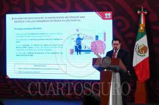 CIUDAD DE MÉXICO, 23FEBRERO2023.- Andrés Manuel López Obrador, presidente de México, Luisa Maria Alcalde, Secretaria de Gobernación, Carlos Martínez, titular del Instituto del Fondo Nacional de la Vivienda para los Trabajadores, encabezaron la conferencia matutina en donde se abordó el tema de la vivienda digna en México. FOTO: ROGELIO MORALES /CUARTOSCURO.COM