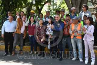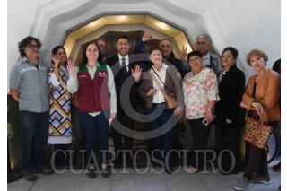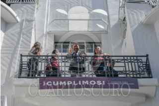 CIUDAD DE MÉXICO, 23FEBRERO2024.- Martí Batres, jefe de Gobierno, y Jabnely Maldonado, comisionada para la Reconstrucción de la Ciudad de México, junto a habitantes de la unidad, durante la entrega del Edificio Multifamiliar Ámsterdam 285, el cual había sido afectado por el sismo de 2017. FOTO: MARIO JASSO/CUARTOSCURO.COM