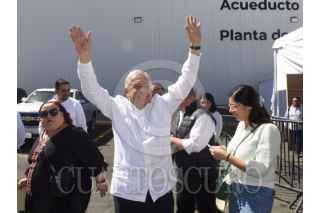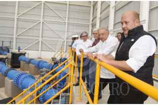 VALLE DE GUADALUPE, JALISCO, 23FEBRERO2024.- Andrés Manuel López Obrador, presidente de México, encabezó la Inauguración del Acueducto El Salto - La Red – Calderón en compañía de: Jose Antonio Zamora Gayoso, subdirector general de Administración del Agua; Juan Pablo de Botton Falcón, subsecretario de Egresos de la Secretaría de Hacienda y Crédito Público; Enrique Alfaro Ramírez, gobernador de Jalisco; Germán Arturo Martínez Santoyo, director general de la Comisión Nacional del Agua (Conagua); Claudia Gómez Godoy, encargada de la presa El Zapotillo y del Plan de Justicia para los pueblos de Temacapulin, Acasico y Palmarejo y Felipe Zataráin Mendoza, Subdirector General de Agua Potable, Drenaje y Saneamiento. FOTO: PRESIDENCIA/CUARTOSCURO.COM