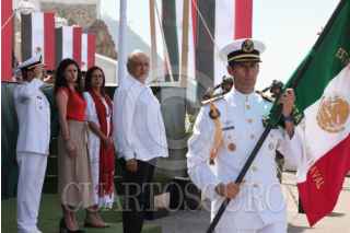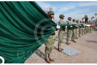 Mazatlán, Sinaloa, México, 24 de febrero de 2024. Andrés Manuel López Obrador, presidente Constitucional de los Estados Unidos Mexicanos encabeza Día de la Bandera en la Explanada “Sánchez Taboada”. Lo acompañan Ricardo Trevilla Trejo, jefe del Estado Mayor Conjunto de la Secretaría de la Defensa Nacional; José de Jesús Leana Ojeda, comandante de la III Región Militar; Bertín Hernández Mercado, comandante de la Fuerza Aérea Mexicana; Alfredo Hernández Suárez, jefe del Estado Mayor General de la Armada; Jaime González Ávalos, Inspección y Contraloría General del Ejército y Fuerza Aérea; César Carlos Preciado Velázquez, Oficial Mayor de Marina; Gabriel García Rincón, subsecretario de la Defensa Nacional; Leticia Ramírez Amaya, secretaria de Educación; Rosa Icela Rodríguez Velázquez, Secretaria de Seguridad y Protección Ciudadana; Rubén Rocha Moya, gobernador Constitucional del Estado de Sinaloa; Luis Cresencio Sandoval González, secretario de la Defensa Nacional; José Rafael Ojeda Durán, secretario de Marina; Luisa María Alcalde Luján, secretaria de Gobernación; Alicia Bárcena Ibarra, Secretaria de Relaciones Exteriores; Juan Pablo de Botton Falcón, subsecretario de Egresos de la Secretaria de Hacienda y Crédito Público; Jose Luis Arellano Ruiz, Subsecretario de Marina; José Alfredo González Rodríguez, Oficial Mayor de la Secretaría de la Defensa Nacional; Julio César Pescina Ávila, Inspección y Contraloría General de Marina; Celestino Ávila Astudillo, comandante del Ejército Mexicano; David Córdova Campos, comandante de la Guardia Nacional y Edgar Augusto González Zatarain, Presidente Municipal de Mazatlán, Sinaloa. Foto: Presidencia