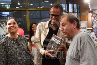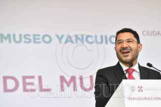 CIUDAD DE MÉXICO, 24FEBRERO2024.- Jabnely Maldonado, comisionada para la Reconstrucción de la Ciudad de México; Javier Hidalgo, coordinador general del Subsistema de Educación Comunitaria Pilares, y Paco Ignacio Taibo II, director general del FCE, durante el acto protocolario por la inauguración del Museo Yancuic ubicado en la colonia Los Ángeles de la alcaldía Iztapalapa. FOTO: MARIO JASSO/CUARTOSCURO.COM
