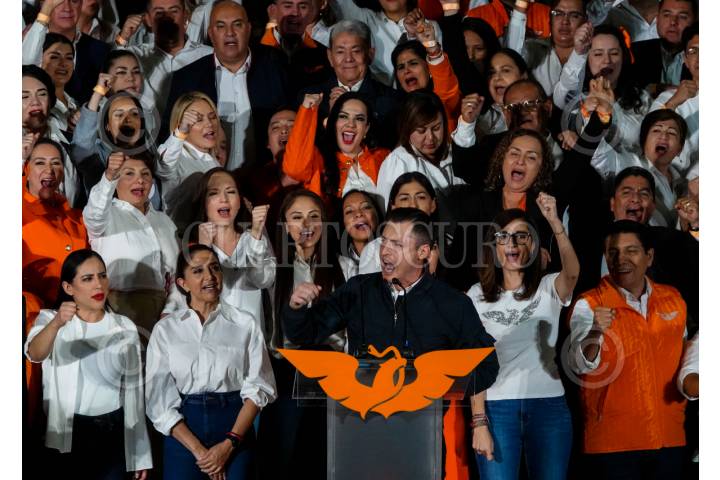 CIUDAD DE MÉXICO, 24FEBRERO2024.- Luis Donaldo Colosio Riojas, candidato al senado por Nuevo León, durante la protesta ante el partido de las y los candidatos a senadores y diputados por MC. FOTO: GALO CAÑAS/CUARTOSCURO.COM