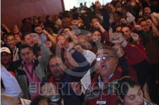 CIUDAD DE MÉXICO, 25FEBRERO2024.- Simpatizantes del Sindicato Mexicano de Electricistas mostraron su apoya al diputado Gerardo Fernández Noroña durante su participación en el Primer Encuentro Nacional con Organizaciones Sociales y Civiles de la Cuarta Transformación, realizado en el Salón Los Candiles. FOTO: GRACIELA LÓPEZ /CUARTOSCURO.COM