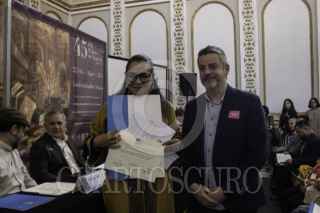 CIUDAD DE MÉXICO 25FEBRERO2024.- Aleida Calleja Gutiérrez, directora general del Instituto Mexicano de la Radio (IMER) recibió en nombre del IMER el reconocimientosde Radio Educación “En los andamios de la Creación” que fue incluida en el registro de la Memoria del Mundo de Unesco México. La entrega se llevo a cabo en la Capilla del Palacio de Minería. FOTO: ANDREA MURCIA /CUARTOSCURO.COM