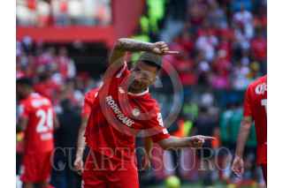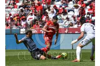 TOLUCA, ESTADO DE MÉXICO, 25FEBRERO2024.- Juan Pablo Domínguez medio de los Diablos de Toluca y Nicolás Díaz defensa y Luis García portero de los Xolos de Tijuana, en el partido correspondiente a la jornada 8 del Torneo Clausura 2024, obteniendo el triunfo la escuadra choricera con un marcador final 2-0. FOTO: CRISANTA ESPINOSA AGUILAR /CUARTOSCURO.COM