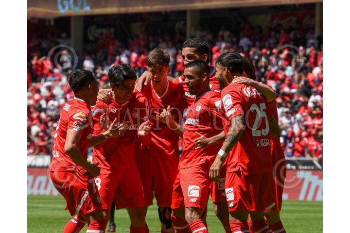 TOLUCA, ESTADO DE MÉXICO, 25FEBRERO2024.- La escuadra de los Diablos de Toluca festejan la anotación ante los Xolos de Tijuana, en el partido correspondiente a la jornada 8 del Torneo Clausura 2024, obteniendo el triunfo la escuadra choricera con un marcador final 2-0. FOTO: CRISANTA ESPINOSA AGUILAR /CUARTOSCURO.COM