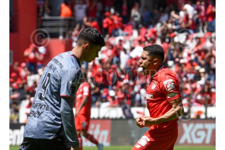 TOLUCA, ESTADO DE MÉXICO, 25FEBRERO2024.- Juan Domínguez medio de los Diablos de Toluca festeja su anotación ante los Xolos de Tijuana, en el partido correspondiente a la jornada 8 del Torneo Clausura 2024, obteniendo el triunfo la escuadra choricera con un marcador final 2-0. FOTO: CRISANTA ESPINOSA AGUILAR /CUARTOSCURO.COM