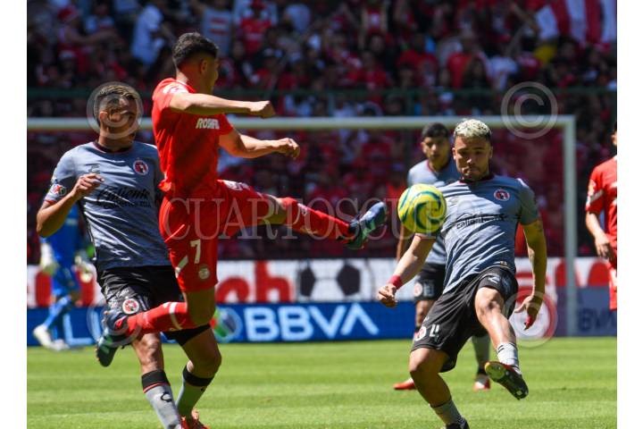 TOLUCA, ESTADO DE MÉXICO, 25FEBRERO2024.- Juan Pablo Domínguez medio de la escuadra de los Diablos de Toluca y Nicolás Díaz defensa de los Xolos de Tijuana, en el partido correspondiente a la jornada 8 del Torneo Clausura 2024, obteniendo el triunfo la escuadra choricera con un marcador final 2-0. FOTO: CRISANTA ESPINOSA AGUILAR /CUARTOSCURO.COM