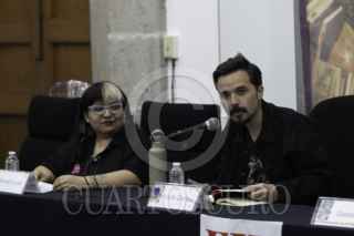 CIUDAD DE MÉXICO 25FEBRERO2024.- Daniela Rea, Adolfo Córdova y la ilustradora, Rosario Lucas presentaron su libro "Canción de Protesta por Lxs Jóvenes Desaparecidos en la Feria del Libro Palacio de Minería en su 45 edición. FOTO: ANDREA MURCIA /CUARTOSCURO.COM
