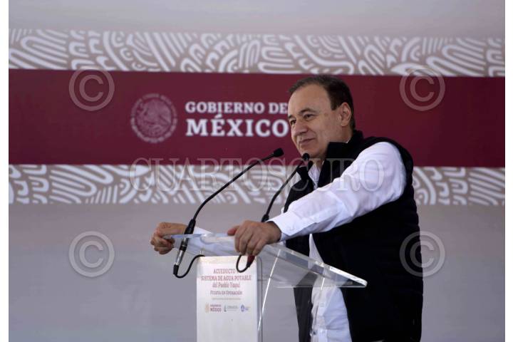 CAJEME, SONORA, 25FEBRERO2024.- Alfonso Durazo, gobernador de Sonora, durante la puesta en operación del Acueducto y Sistema de Agua Potable del Pueblo Yaqui, que se llevó a cabo en el Mirador Escénico de la presa “Álvaro Obregón” o presa del Oviáchic. FOTO: PRESIDENCIA/CUARTOSCURO.COM