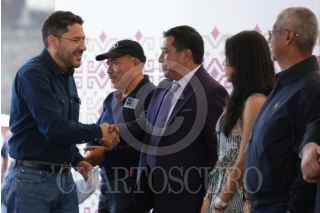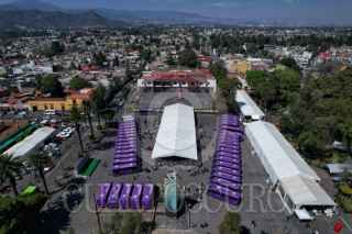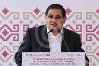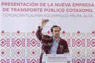 CIUDAD DE MÉXICO, 25FEBRERO2024.- Martí Batres, Jefe de Gobierno, Jefe de Gobierno; José Carlos Acosta Ruiz, alcalde de Xochimilco, y Andrés Lajous, secretario de Movilidad, encabezaron la presentación de la nueva empresa de transporte público "Cotaxomil", que brindará servicio de Taxqueña a Xochimilco y Milpa Alta. FOTO: GOBIERNO DE LA CIUDAD DE MÉXICO/CUARTOSCURO.COM