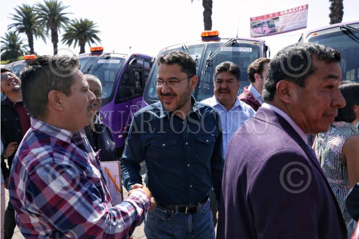 CIUDAD DE MÉXICO, 25FEBRERO2024.- Martí Batres, Jefe de Gobierno, Jefe de Gobierno; José Carlos Acosta Ruiz, alcalde de Xochimilco, y Andrés Lajous, secretario de Movilidad, encabezaron la presentación de la nueva empresa de transporte público "Cotaxomil", que brindará servicio de Taxqueña a Xochimilco y Milpa Alta. FOTO: GOBIERNO DE LA CIUDAD DE MÉXICO/CUARTOSCURO.COM