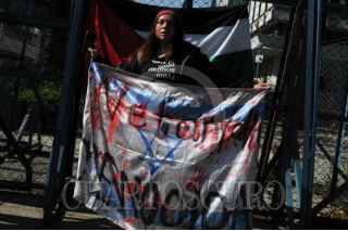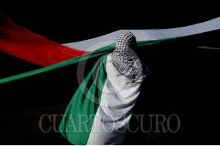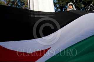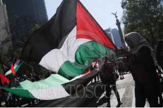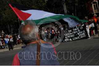 CIUDAD DE MÉXICO, 25FEBRERO2024. - Una persona marcha cargando la bandera de Palestina. FOTO: DANIEL AUGUSTO /CUARTOSCURO.COM