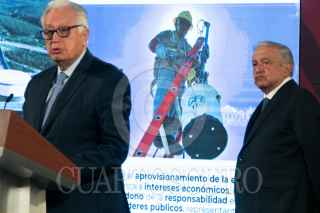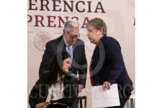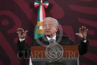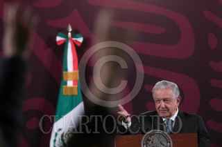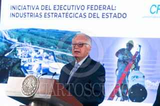 CIUDAD DE MÉXICO, 26FEBRERO2024.- Andrés Manuel López Obrador, Presidente de México, observa a Manuel Bartlett, director de la CFE, durante su exposición de motivos en torno a la reforma constitucional en materia energética, durante la mañanera. FOTO: MOISÉS PABLO/CUARTOSCURO.COM