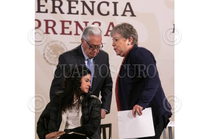 CIUDAD DE MÉXICO, 26FEBRERO2024.- Luisa María Alcalde Luján, secretaria de Gobernación; Manuel Bartlett, director de la CFE, y Alicia Bárcena, secretaria de Relaciones Exteriores, durante la mañanera en la cual se habló sobre la propuesta de la Reforma Energética en materia constitucional y el plan integral en materia migratoria, durante la mañanera. FOTO: MOISÉS PABLO/CUARTOSCURO.COM