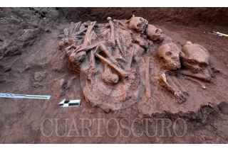 SANTIAGO IXCUINTLA, NAYARIT, 26FEBRERO2024.- Personal del Instituto Nacional de Antropología e Historia (INAH), dependencia de la Secretaría de Cultura del Gobierno de México, a través de su representación estatal, registró un enterramiento de la época prehispánica, el cual arroja luz sobre prácticas funerarias únicas y cómo se llevaban a cabo en la región. Dicho hallazgo se suscitó en la localidad de Pozo de Ibarra, donde se realiza una obra de construcción de red de alcantarillado sanitario. El salvamento arqueológico fue ejecutado por personal del Centro INAH Nayarit, para salvaguardar el patrimonio, en colaboración con el gobierno de Nayarit, a través de la Comisión Estatal de Agua Potable y Alcantarillado. De acuerdo con la arqueóloga encargada de las labores de salvamento en campo, Claudia Servín Rosas, se trata de un sistema funerario compuesto por un entierro primario, es decir, el esqueleto mantiene la relación anatómica, acompañado de una concentración de restos óseos humanos depositados sin relación anatómica, los cuales guardan un acomodo particular. FOTO: INAH/CUARTOSCURO.COM