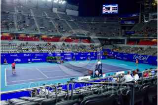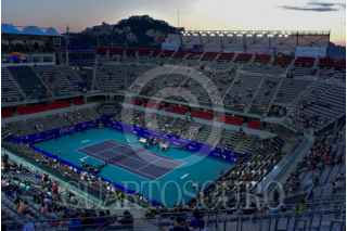 ACAPULCO, GUERRERO, 26ENERO2024.- La Arena GNP Seguros sede del torneo Abierto Mexicano de Tenis lució semi vacía en el primer día del Abierto Mexicano de Tenis de Acapulco, sin embargo lo organizadores esperan que en los próximo días esto cambie. Esta sede quedo semidestruida tras el paso del huracán Otis. FOTO: CARLOS ALBERTO CARBAJAL/CUARTOSCURO.COM