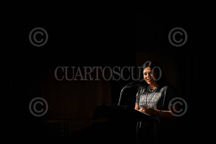 CIUDAD DE MÉXICO, 27FEBRERO2024.- Alejandra Frausto, secretaria de Cultura, durante su discurso en la entrega del Premio Nacional de Artes y Literatura 2023, realizada en el Palacio de Bellas Artes. FOTO: MARIO JASSO/CUARTOSCURO.COM