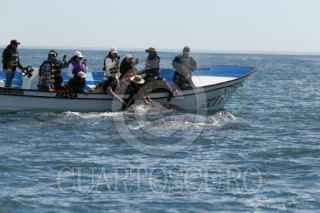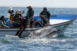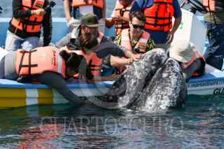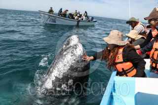 MULEGÉ, BAJA CALIFORNIA SUR, 27FEBRERO2024.- Después de un viaje de más de 10 000 km desde el Ártico hasta las tibias y tranquilas aguas del Pacífico mexicano, la ballena gris visita para su apareamiento y reproducción las lagunas de San Ignacio y Ojo de Liebre, en la comunidad de Guerrero Negro. Esta localidad forma parte de la Reserva de la Biosfera del Vizcaíno y fue declarada por el gobierno mexicano santuario de la ballena gris para su protección y conservación desde principios de los años 80s. La especie llegó a ser considerada extinta a principios del siglo XX, tras la caza indiscriminada. En 1947, la Comisión Ballenera Internacional declaró a la ballena gris especie protegida, desde aquella fecha, las poblaciones de ballena gris han experimentado gran recuperación debido a su protección, hasta alcanzar una cifra que oscila entre los 25 000 a 30 000 individuos; sin embargo, la población del océano Pacífico occidental sigue estando muy reducida y esta especie sigue estando considerada como una especie amenazada por la Unión Internacional para la Conservación de la Naturaleza y los Recursos Naturales (UICN). Cada año, ente los meses de noviembre y mayo, siendo finales de febrero las semanas con mayor avistamiento y presencia. Las ballenas grises constituyen en la actualidad una atracción turística, cientos de visitantes nacionales y extranjeros visitan la Laguna Ojo de Liebre para poder observarla y en algunos momentos poder tocar al cetáceo y sus crias. FOTO: ADOLFO VLADIMIR /CUARTOSCURO.COM