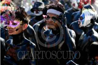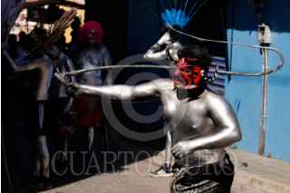 SAN NICOLÁS DE LOS RANCHOS, PUEBLA, 27FEBRERO2024.- Los Pintados o Xinacates salieron a las calles de San Nicolás de los Ranchos a disfrutar del carnaval donde piden a los transeúntes unas monedas para su baño a cambio de no ensuciarlos. FOTO: MIREYA NOVO/CUARTOSCURO.COM