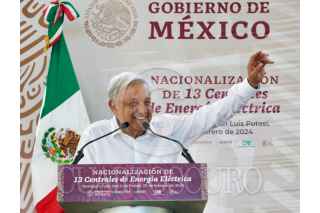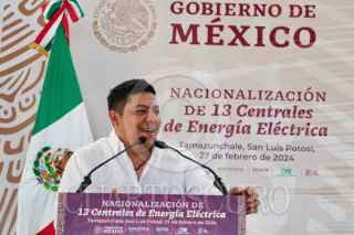TAMAZUNCHALE, SAN LUIS POTOSÍ, 27FEBRERO2024.- Andrés Manuel López Obrador, Presidente de México, encabezó la ceremonia de Nacionalización de 13 centrales de energía eléctrica en la Central de Ciclo Combinado Tamazunchale II. Lo acompañaron José Ricardo Gallardo Cardona, gobernador Constitucional del Estado de San Luis Potosí; Rogelio Ramírez de la O, secretario de Hacienda y Crédito Público; y Manuel Bartlett Díaz, director general de la Comisión Federal de Electricidad. FOTO: PRESIDENCIA/CUARTOSCURO.COM