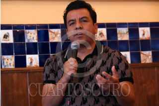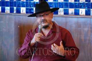 CIUDAD DE MÉXICO, 28FEBRERO2024.- Pepe Carlos, acordeonista y requinto de la banda mexicoestadounidense La Santa Cecilia, durante su participación en una conferencia de prensa en el Salón Tenampa, para anunciar los detalles de su gira “4 Copas Bohemia En La Finca Altozano”, el próximo 2 de marzo en el Auditorio BlackBerry. FOTO: GRACIELA LÓPEZ /CUARTOSCURO.COM