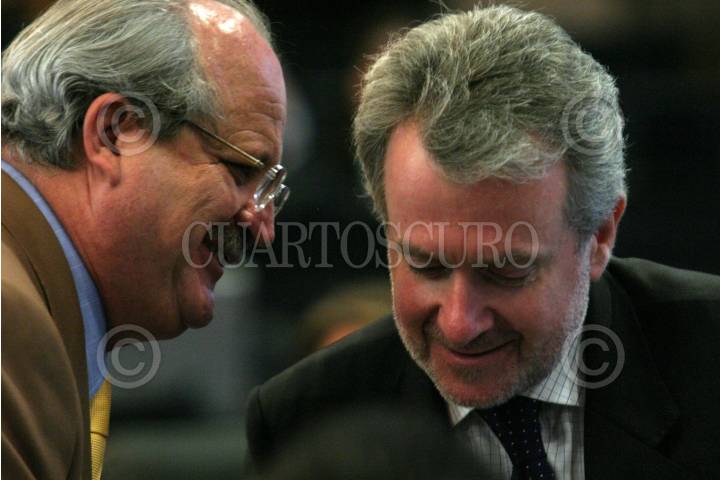 MÉXICO, D.F., 27JUNIO2007.- Graco Ramírez, senador del PRD y Santiago Creel Miranda, senador del PAN, durante la sesión de la Comisión Permanente en el Senado. FOTO: MOISÉS PABLO/CUARTOSCURO.COM