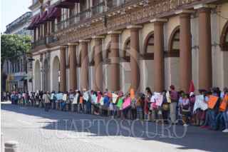 XALAPA, VERACRUZ, 28FEBRERO2024.- Cadena humana por la crisis de agua en Xalapa. Integrantes del movimiento Antorchista se unieron al reclamo por la falta de agua de sus colonia problemática que ha perdurado por años. FOTO: YERANIA ROLÓN/CUARTOSCURO.COM