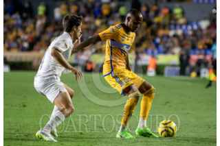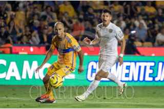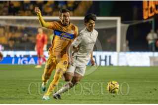 SAN NICOLÁS DE LOS GARZA, NUEVO LEÓN, 28FEBRERO2024.-Juan Vigón de Tigres, se disputa el balón con Danzell García de FC Juárez, en el estadio Universitario, partido correspondiente a la jornada 10 de la Clausura 2024 de la Liga Mx. Marcador Final: Tigres: 1 - FC Juárez: 0. FOTO: GABRIELA PÉREZ MONTIEL / CUARTOSCURO.COM